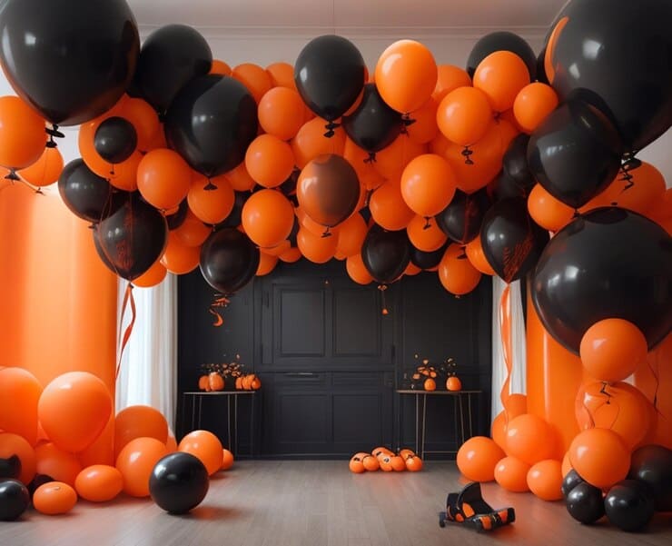 Get creative with some Halloween-themed shapes and designs. Black cats, witches’ hats, or jack-o’-lantern balloons can add a touch of whimsy to your decor. You can even create balloon bouquets featuring these shapes and place them around your home.
