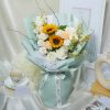 A bouquet that brings beaming joy with a combination of white gerberas, yellow roses, white baby’s breath, and dancing-lady orchids.
