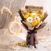 The brilliant mixture of yellow roses, orange roses, and white baby’s breath brings everlasting summer joy and reminisces the warmth of the sun.