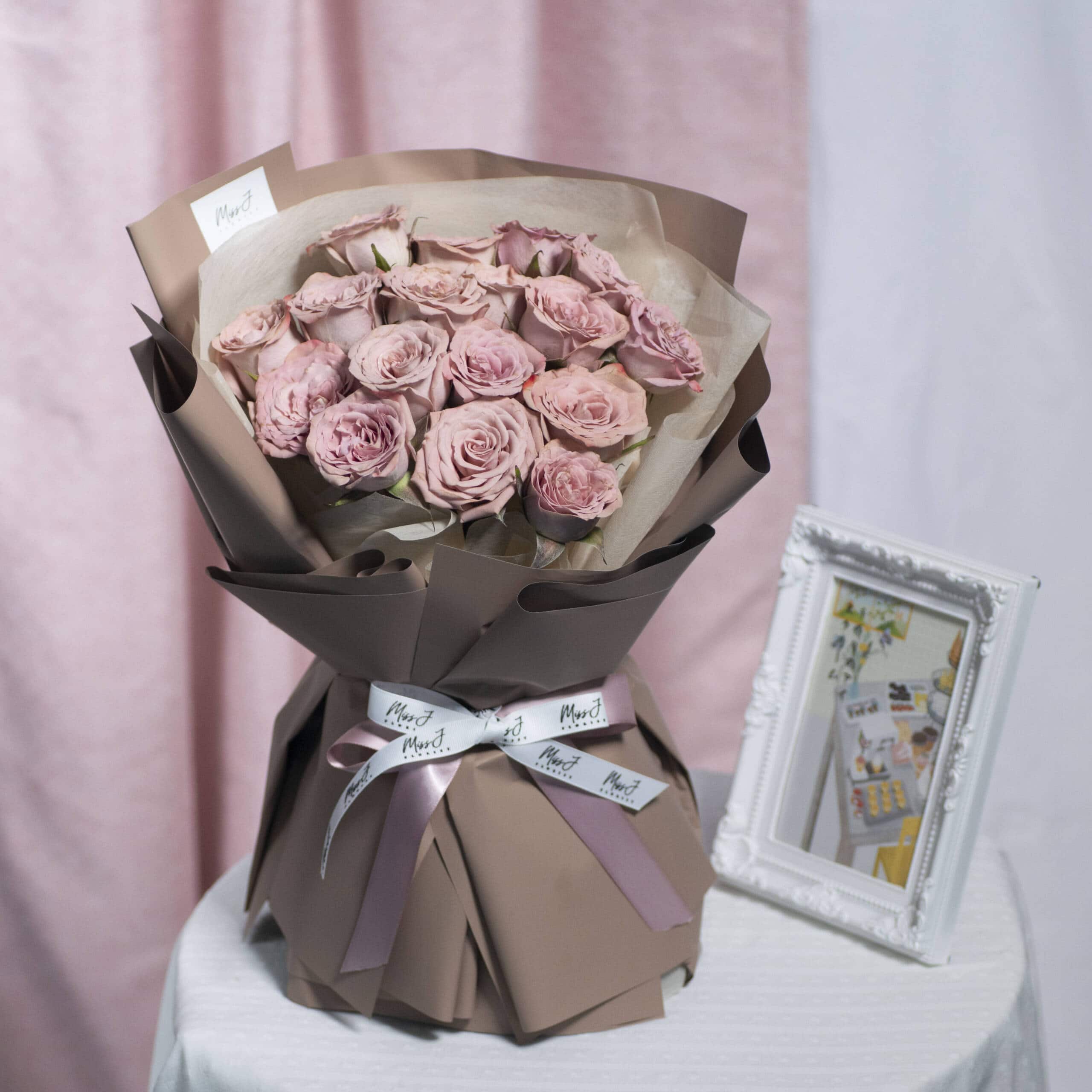 Experience understated luxury with our stunning fresh rose bouquet, Janette, that features cappuccino roses elegantly presented in a rich brown wrapping. Whomever you may gift this to, this bouquet promises to enchant and captivate, evoking a sense of refined simplicity and natural beauty.