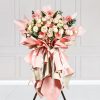 This stand highlights pastel purple roses complemented with pink and white roses. Not forgetting the pop of peach gerbera to brighten up the mood.