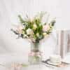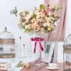 True to its name, this stupendous arrangement features a delightful combination of light pink David Austin roses, creamy roses, and soft white hydrangeas, adding a touch of elegance and grace to any space or occasion.