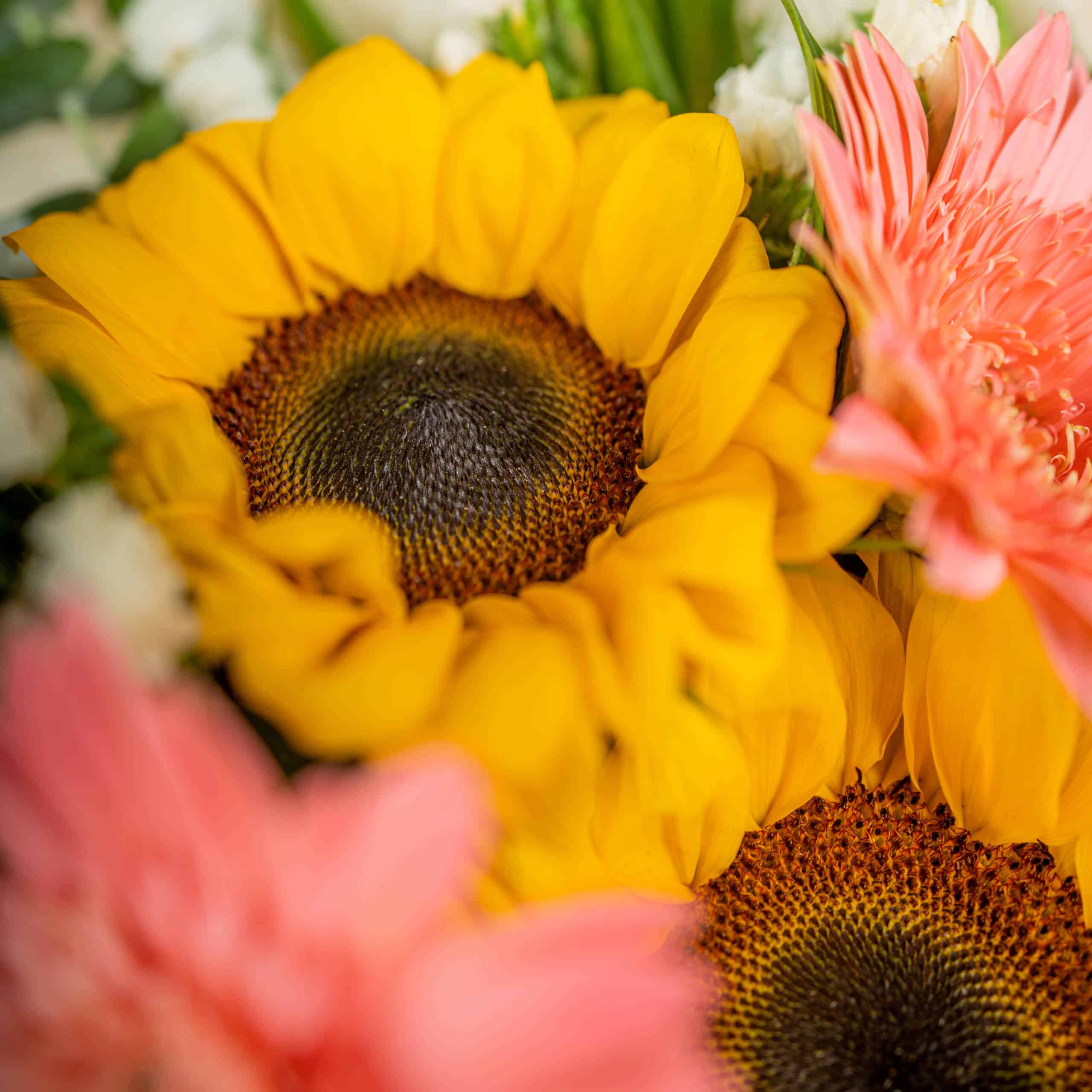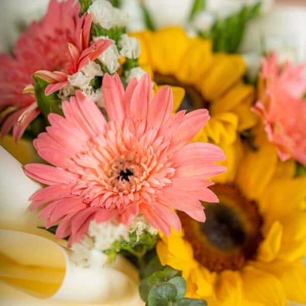 Sunflower Success is created to celebrate graduates in style and elegance! The sunny yellow sunflowers, alongside soft pink daisies against the cream wrapper is the true epitome of class and beauty, making it a one-of-a kind bouquet as graduation gift.