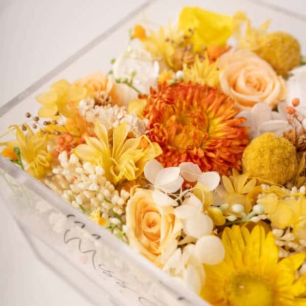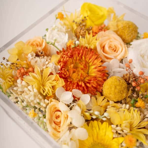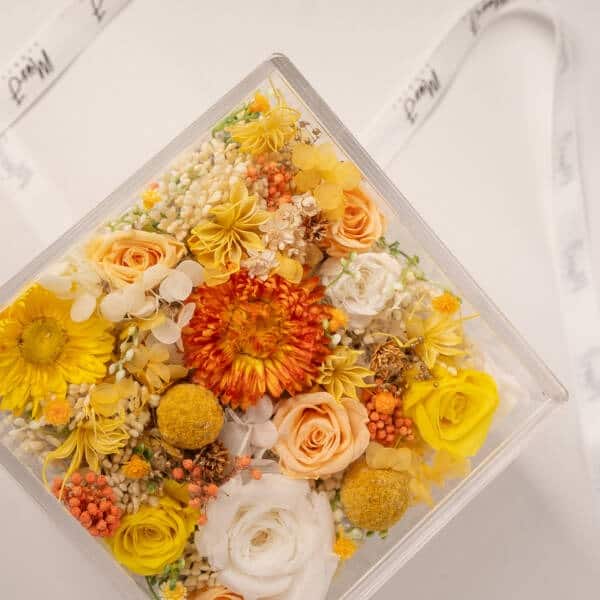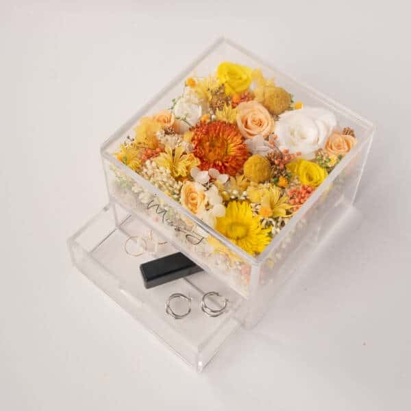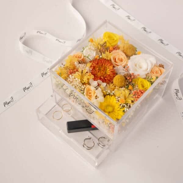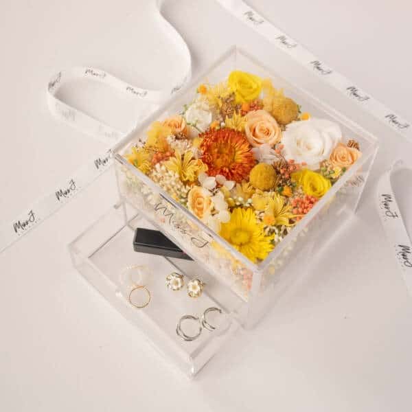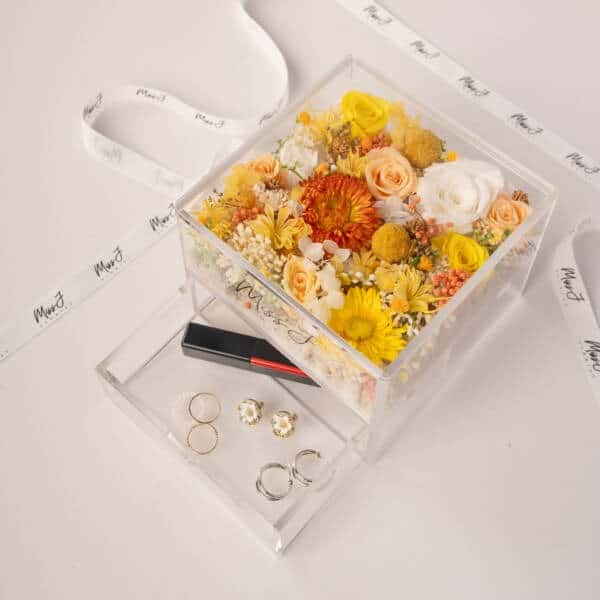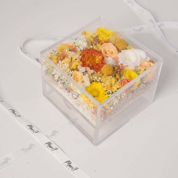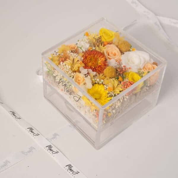 - For preserved flower arrangement in the acrylic box, do take note that the items shown in the acrylic box are for illustration purpose only. Items are not included unless an add-on is requested by customer.