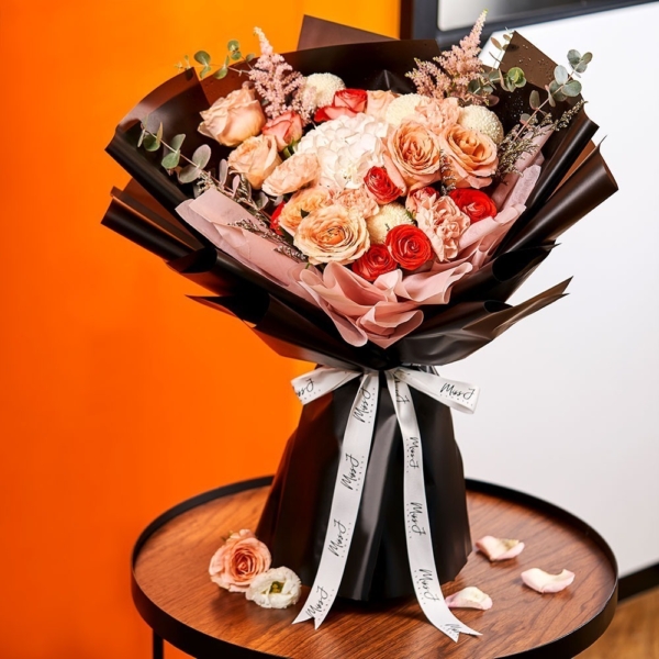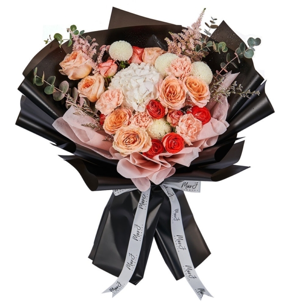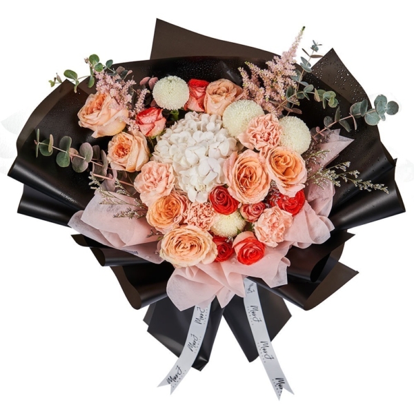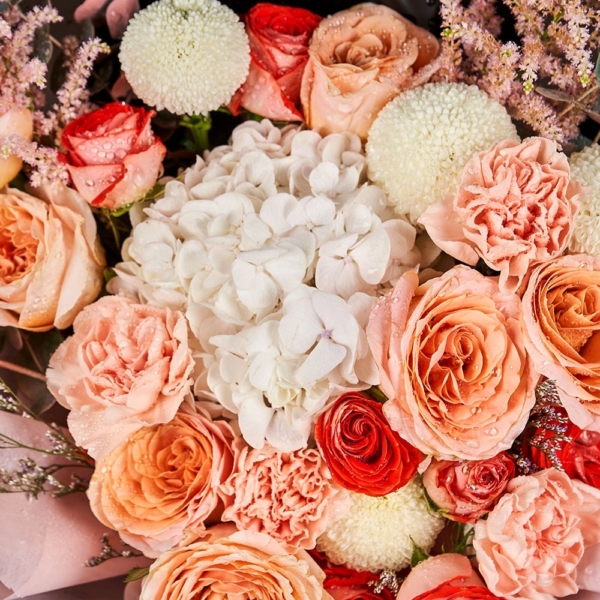 What a wondrous bouquet to gift to your loved ones. The Peach roses speak for your sincerity while the White hydrangeas stand for purity and grace.